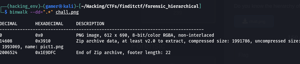 Sama seperti step sebelumnya, proses binwalk juga dilakukan padapict2.png yang didapatkan. Hasil yang didapatkan adalah sebuah file PNG baru yang berbeda lagi pada offset 0x38E6